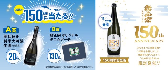 また、抽選で150名様に当たる「プレゼント企画」をご用意していしています。150周年記念限定酒 についている専用ハガキでご応募ください。